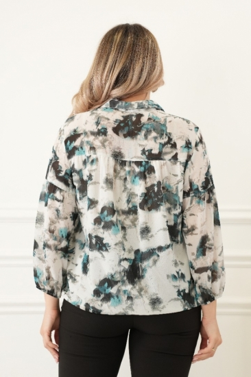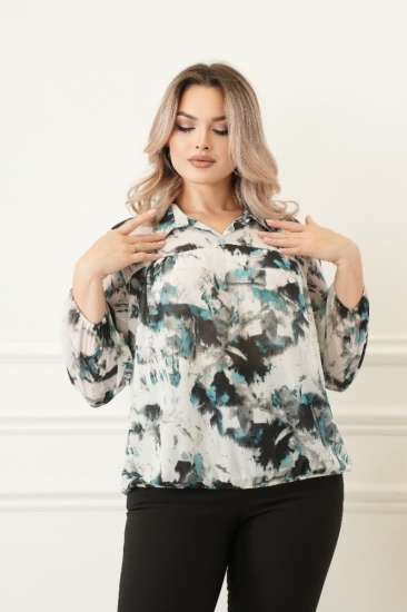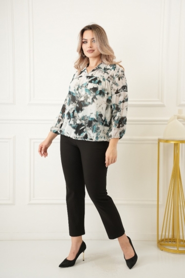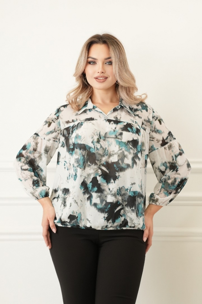 Крой блузки продуман до мелочей: он акцентирует внимание на достоинствах фигуры, мягко скрывая недостатки в области талии и бедер. Это делает модель универсальной и подходящей для различных типов фигур.