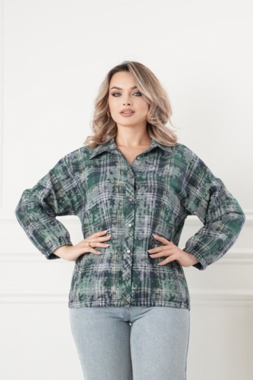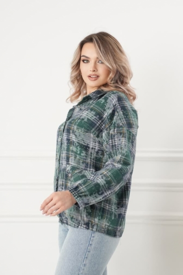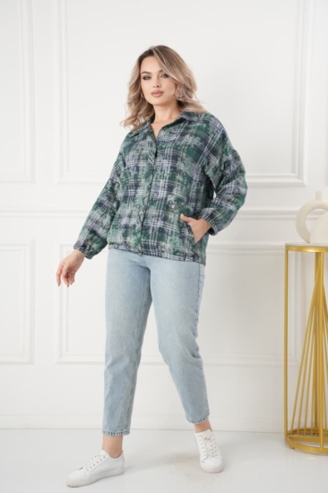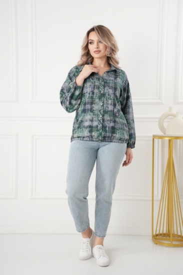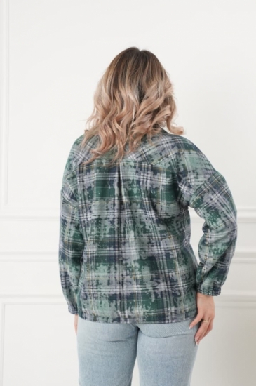 Горловина переда имеет V-образную форму, рукав на резинке, крой блузки продуман до мелочей: он акцентирует внимание на достоинствах фигуры, мягко скрывая недостатки в области талии и бедер в современной расцветке клетка. Это делает модель универсальной и подходящей для различных типов фигур.