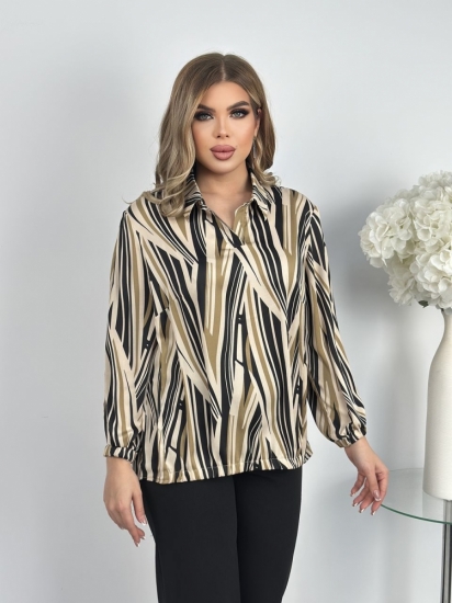 Рубашечный крой придаёт блузке дополнительный изысканный вид. Спереди блузка украшена супатной застежкой на петли и пуговицы, которые создают офисный стиль, а расцветка визуально скрывает все недостатки.