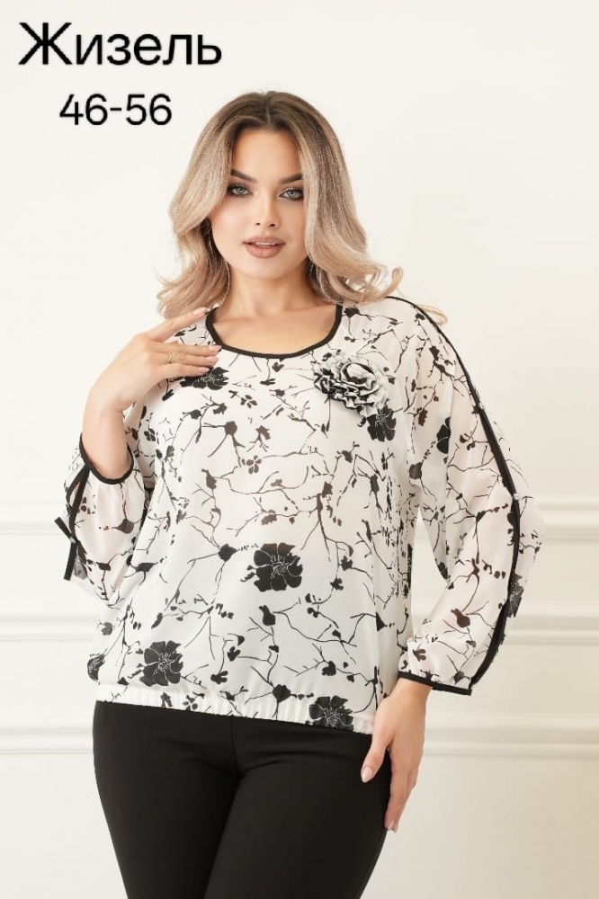 Изготовленная из комфортной воздушной вискозы, блузка «Жизель» гарантирует легкость и приятные ощущения на протяжении всего дня. К каждому изделию-цветок.