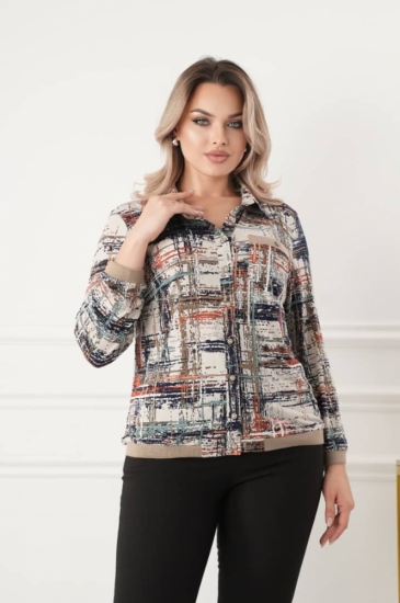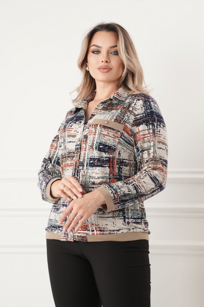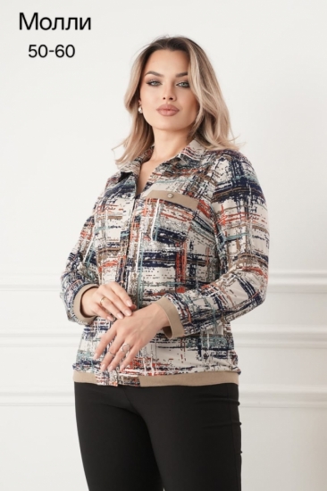 - Трикотажная блузка-бомбер рубашечного покроя, застежка - на петли и пуговицы.