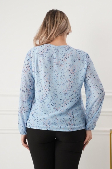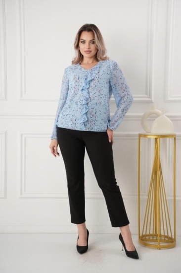 Крой блузки продуман до мелочей: он акцентирует внимание на достоинствах фигуры, мягко скрывая недостатки в области талии и бедер. Это делает модель универсальной и подходящей для различных типов фигур.