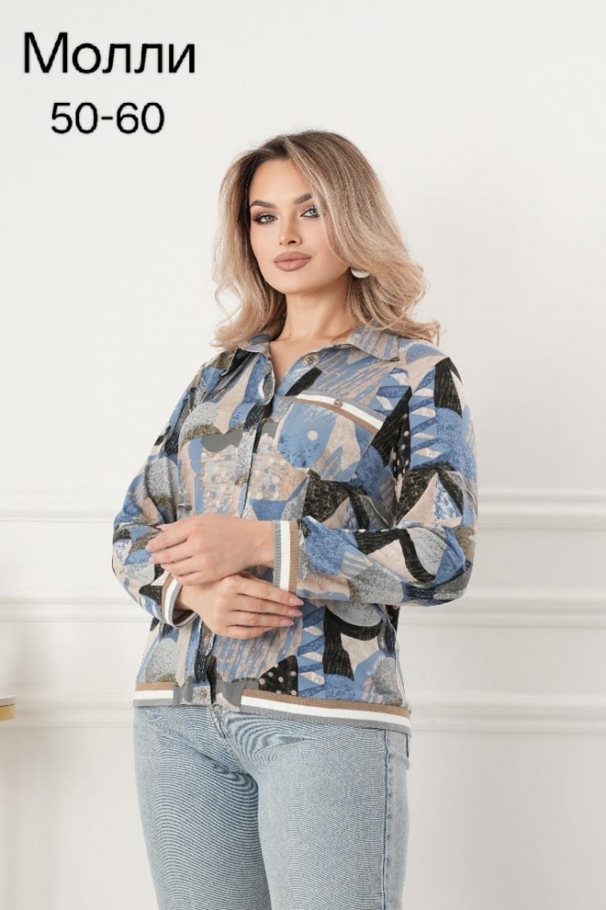 - Трикотажная блузка-бомбер рубашечного покроя, застежка - на петли и пуговицы.