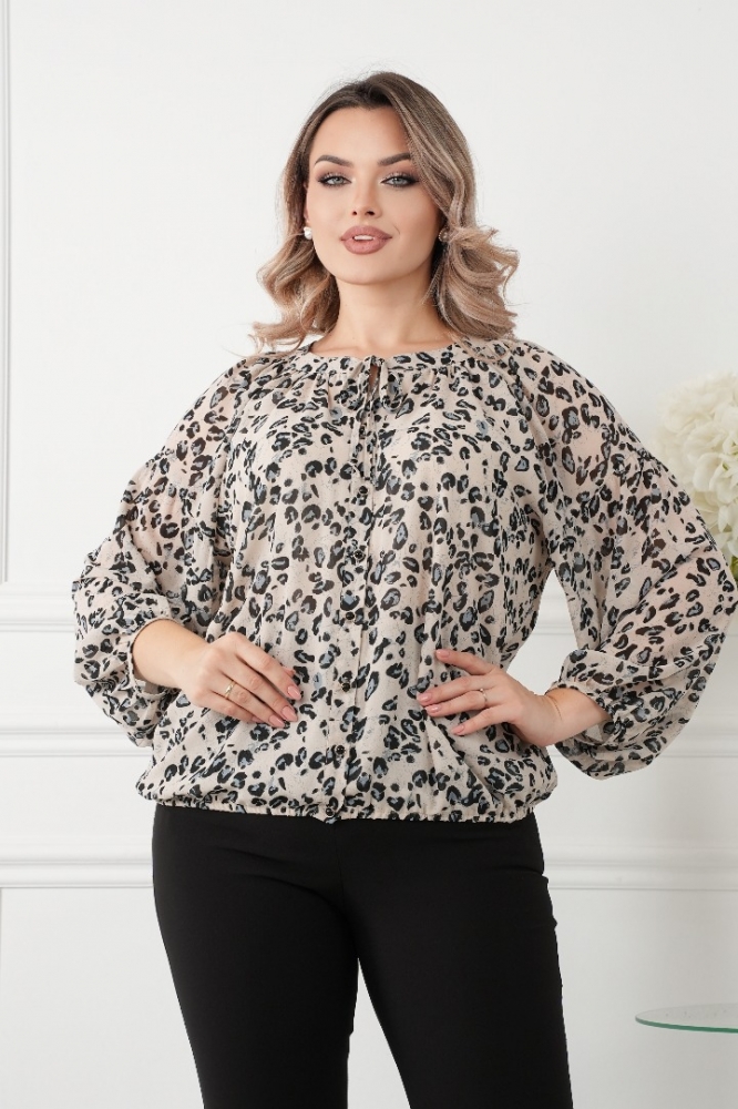 - Блузка застегивается на пуговицы, с обьемными рукавами, низ и рукав изделия присобран на резинку, приятная к телу ткань.