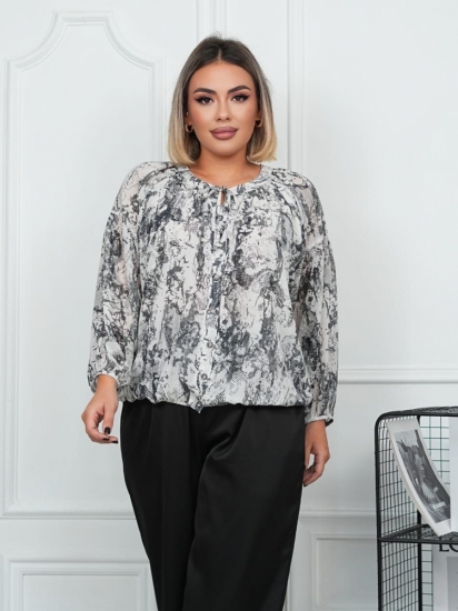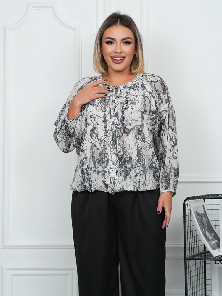 - Блузка застегивается на пуговицы, с обьемными рукавами, низ и рукав изделия присобран на резинку, приятная к телу ткань.