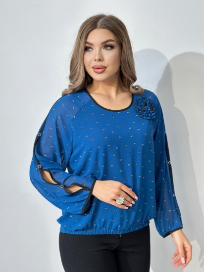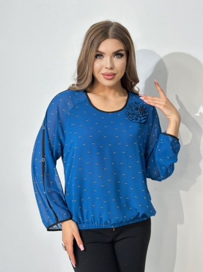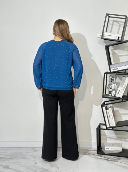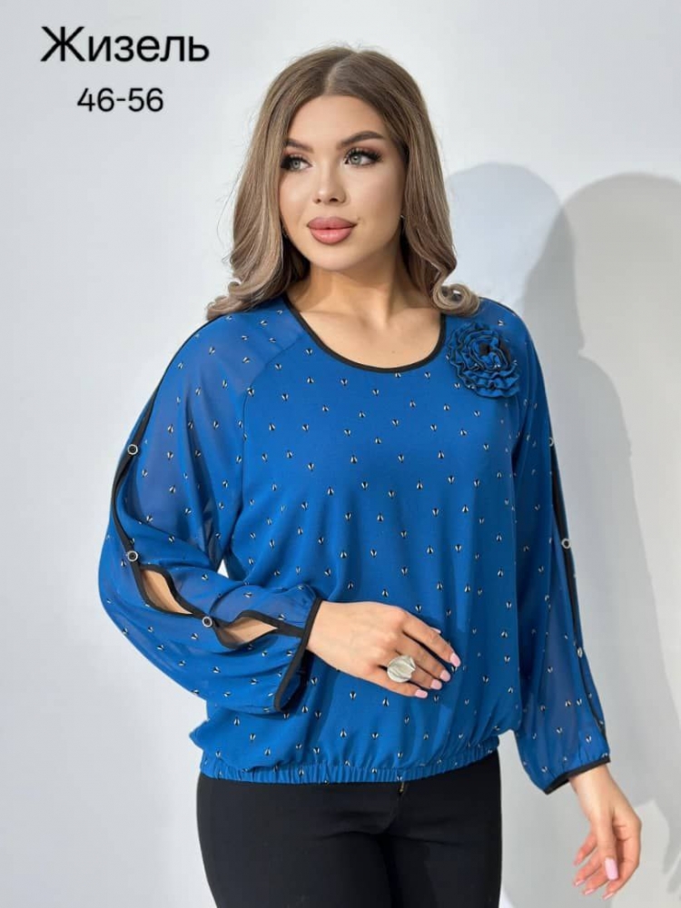 Крой блузки продуман до мелочей: он акцентирует внимание на достоинствах фигуры, мягко скрывая недостатки в области талии и бедер. Это делает модель универсальной и подходящей для различных типов фигур.