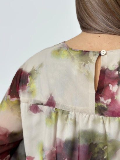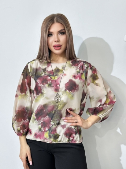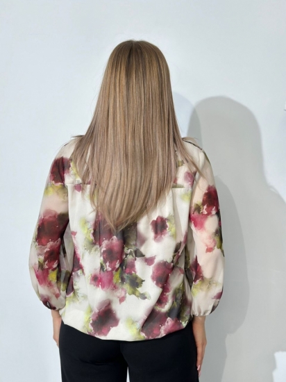 Крой блузки продуман до мелочей: он акцентирует внимание на достоинствах фигуры, мягко скрывая недостатки в области талии и бедер. Это делает модель универсальной и подходящей для различных типов фигур.