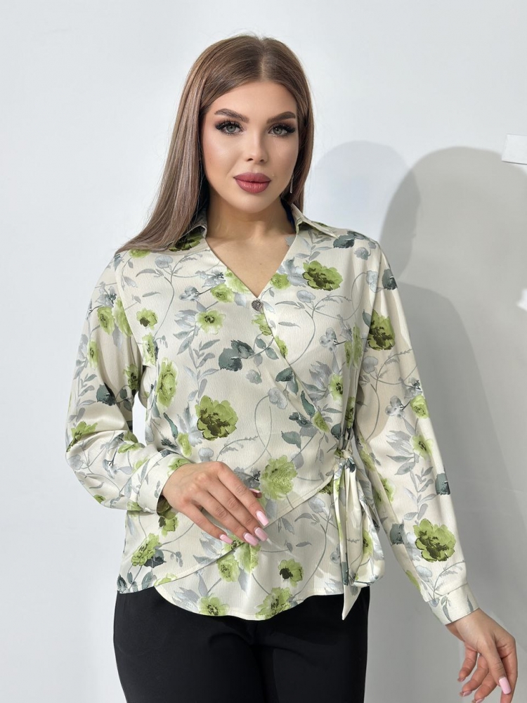 Трендовая блузка Запах 2. Ищете идеальную блузку, которая станет незаменимой частью Вашего гардероба? Представляем Вам нашу шикарную блузку Волан с V-образным вырезом с запахом ! Эта премиум блузка с длинным рукавом идеально вписывается в модные тренды 2025-2026 годов и доступна в размерах 46-56.
