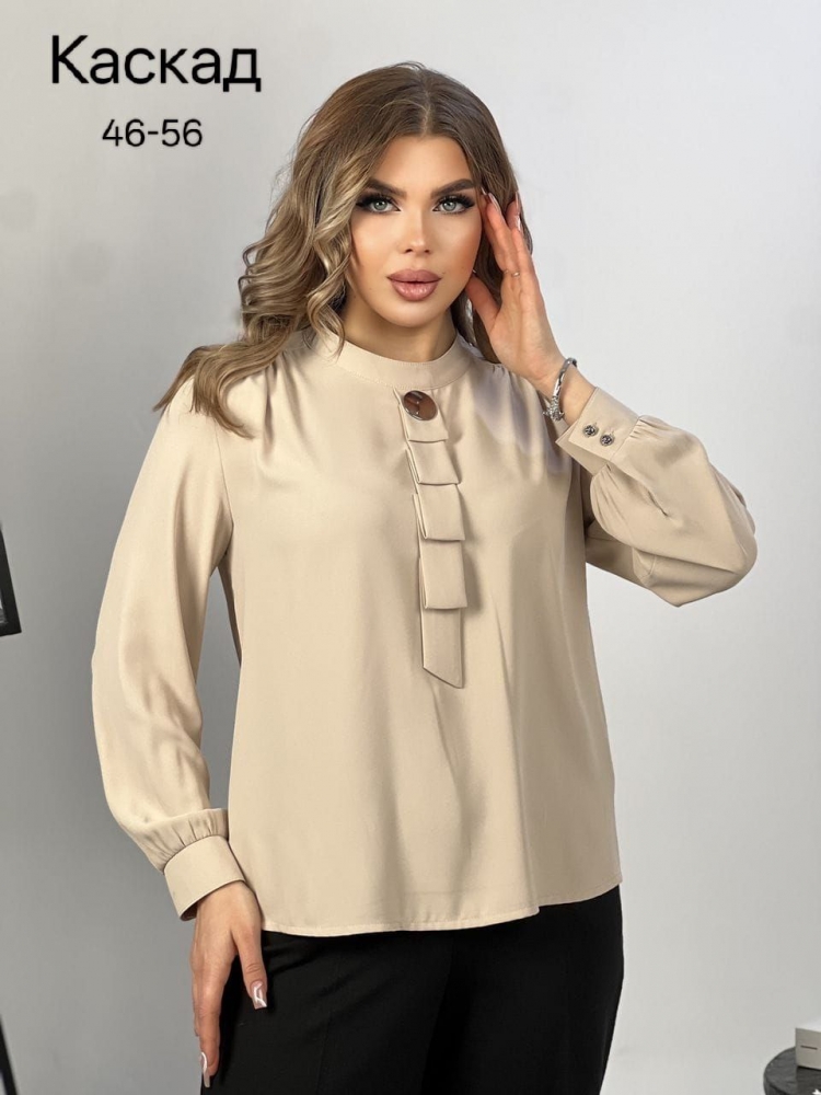 Трендовая блузка Каскад. Ищете идеальную блузку, которая станет незаменимой частью Вашего гардероба? Представляем Вам нашу шикарную блузку Каскад с прямым кроем и круглым вырезом! Эта премиум блузка с длинным рукавом идеально вписывается в модные тренды 2025-2026 годов и доступна в размерах 46-56.