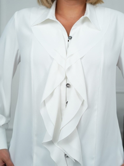 Трендовая шелковая блузка Волан 2. Ищете идеальную блузку, которая станет незаменимой частью Вашего гардероба? Представляем Вам нашу шикарную блузку Волан с V-образным вырезом и воротником! Эта премиум блузка с длинным рукавом идеально вписывается в модные тренды 2025-2026 годов и доступна в размерах 46-56.