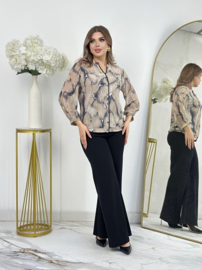 Ориентированный на российские стандарты, крой блузки прекрасно подчеркивает достоинства фигуры и скрывает ее недостатки, что делает ее идеальным выбором для женщин с различными типами телосложения.