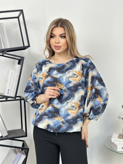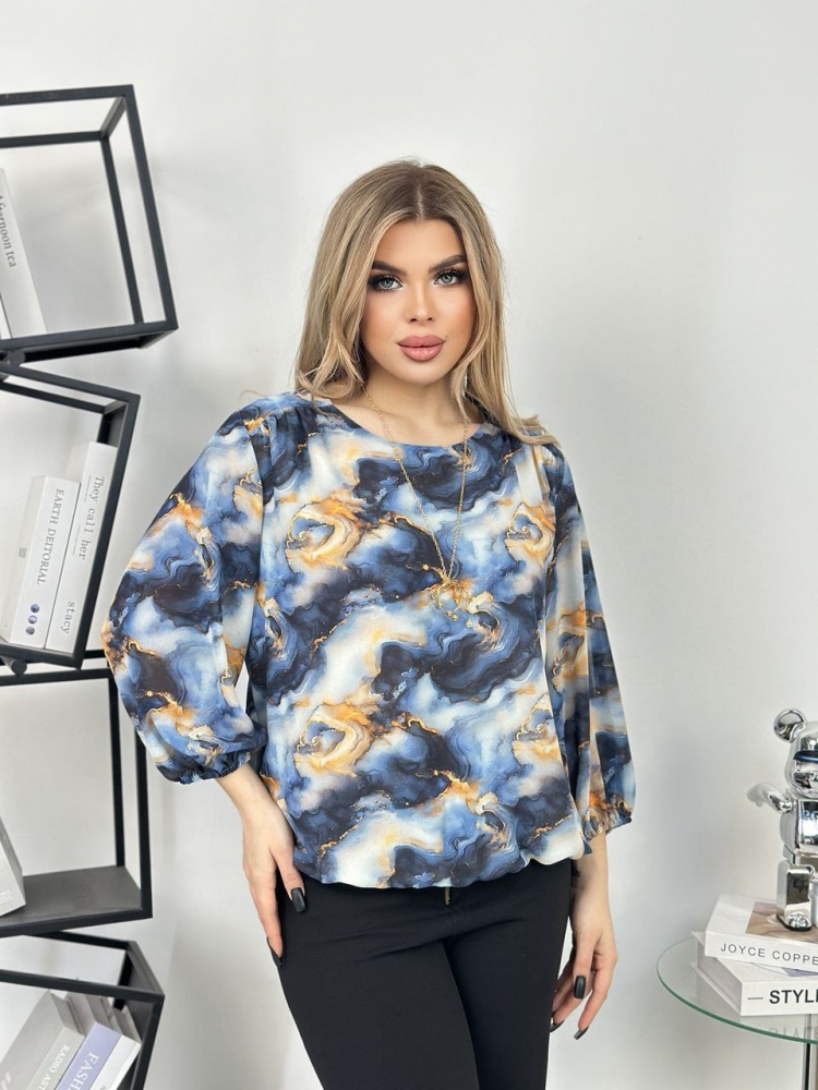Крой блузки продуман до мелочей: он акцентирует внимание на достоинствах фигуры, мягко скрывая недостатки в области талии и бедер. Это делает модель универсальной и подходящей для различных типов фигур.