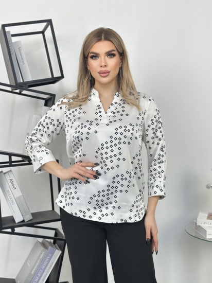 Ориентированный на российские стандарты, крой блузки прекрасно подчеркивает достоинства фигуры и скрывает ее недостатки, что делает ее идеальным выбором для женщин с различными типами телосложения.